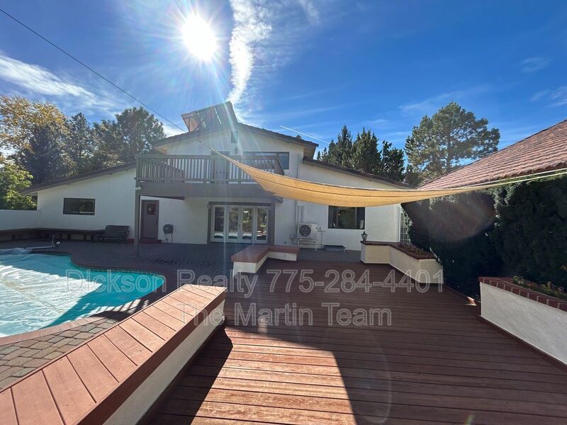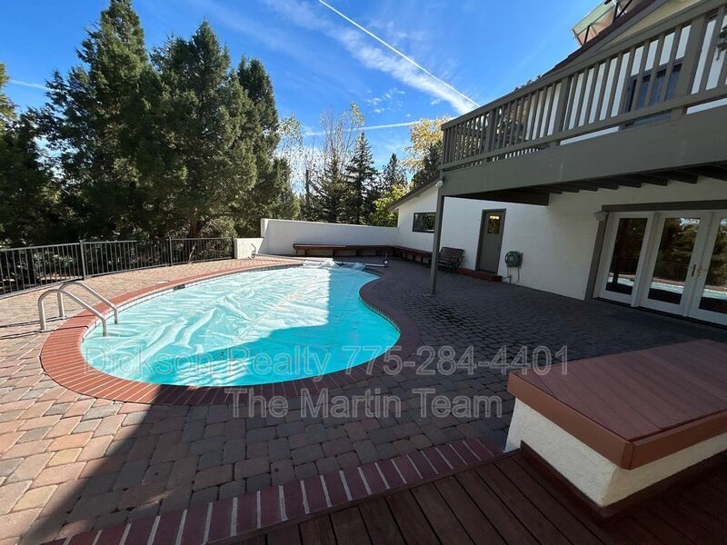 Available NOW!! To view this gorgeous, one-of-a-kind home, PLEASE CALL 775-284-4401. Located in the desirable Caughlin Ranch area of Reno, NV, offers an earthy Tuscan vibe with a wealth of amenities on 1.25 acres. With 4 bedrooms, this home is perfect for those seeking space, charm, and functionality. The main floor features 3 bedrooms, while the private primary suite upstairs offers its own balcony, a luxurious jet tub, and a walk-in shower. The kitchen is a chef’s dream, boasting ample storage, plenty of counter space, and a built-in BBQ—perfect for entertaining. The living room includes a cozy wood-burning fireplace, while the daylight basement is an entertainer's paradise, complete with a bar, a second wood-burning fireplace, and an absolutely stunning wine cellar. Outside, the property features RV parking with full hookups, a hot tub, and a pool. The expansive yard also includes a fenced garden, a serene pond with a gazebo, an outdoor playhouse, and a basketball hoop for endless activities. Additional highlights include a 2-car garage and ample space for outdoor relaxation and recreation. This home offers a unique blend of rustic charm and modern convenience. Washer, dryer and refrigerator are available for tenant use. Pets are allowed on approval. Tenants are responsible for all utilities. Rent is $4000, with a security deposit of $4100 and a one-time administrative fee of $195.